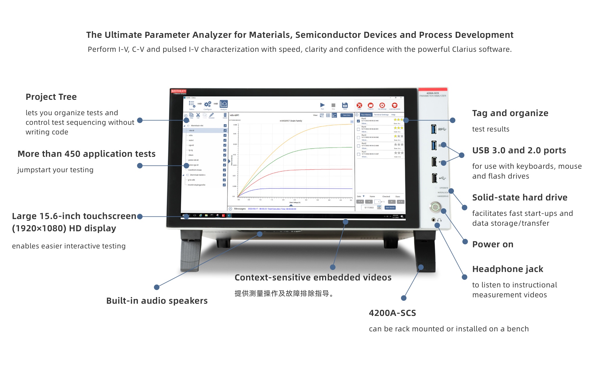 The 4200A-SCS ClariusTM GUI-based Software provides