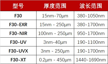 F30 光谱反射率系统能实时测量沉积率、沉积层厚度、光学常数 (n 和 k 值) 和半导体以及电介质层的均匀性。