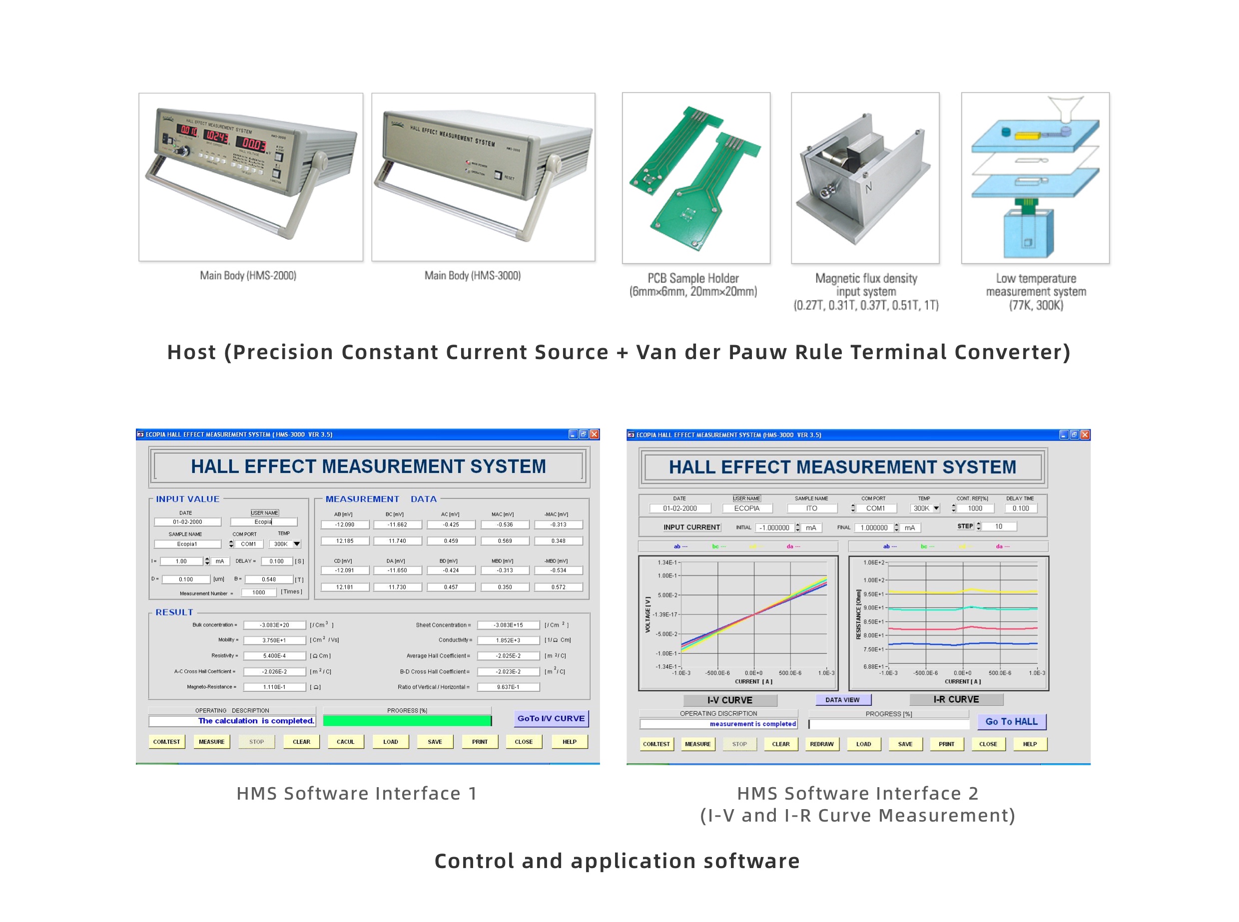 The HMS Series Hall Effect Measurement Systems by ECOPIA mainly consist of a constant current source, a Van der Pauw method terminal converter, a low-temperature (77K) measurement system, and a magnetic field strength input system. Equipped with all the necessary components and configurations for researching the Hall Effect in semiconductor materials, it is a highly mature instrument system. Additionally, the HMS Series instruments have obtained multiple patents for Hall Effect measurement systems and measurement methods, representing global quality in Hall Effect measurement as well as competitive product pricing, and have gained recognition from customers worldwide. This product received CE certification in July 2004.