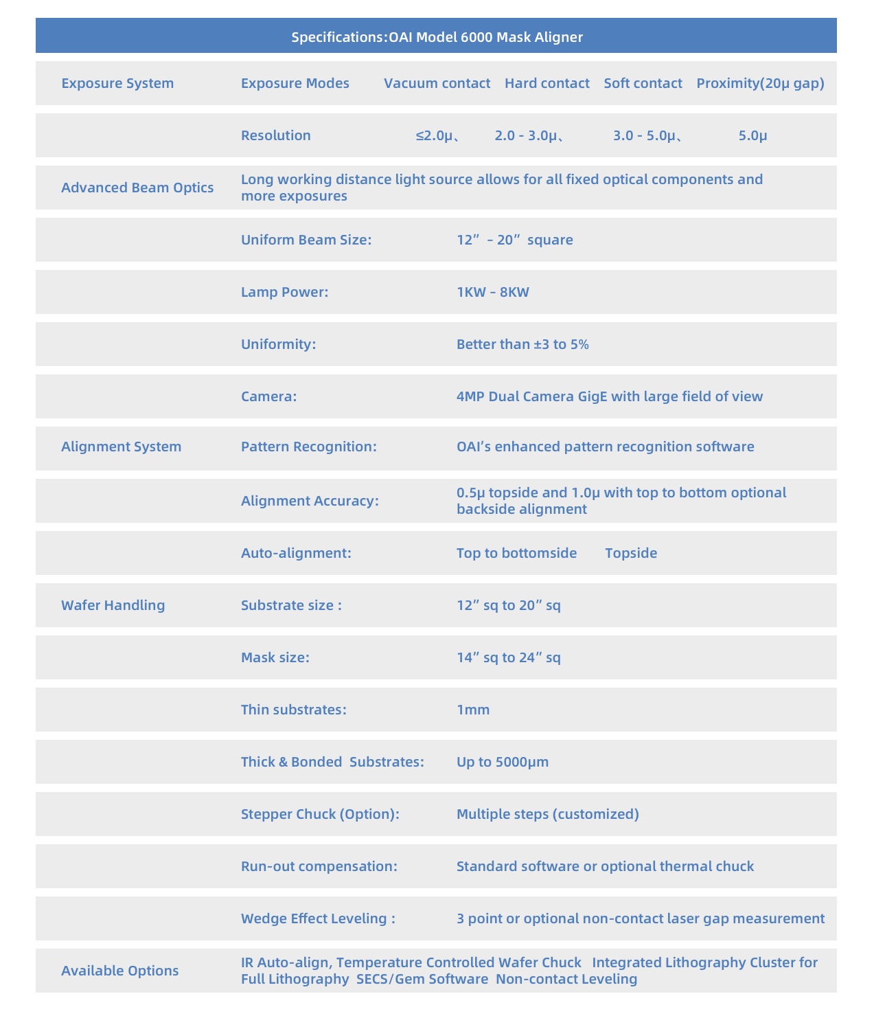 Process Stability Assurance: The OAI 6020 Series delivers excellent performance in terms of performance, reliability, and repeatability, making it an ideal choice for advanced redistribution layer (RDL)-first panel-level packaging (PLP) production and large-area glass panel exposure.