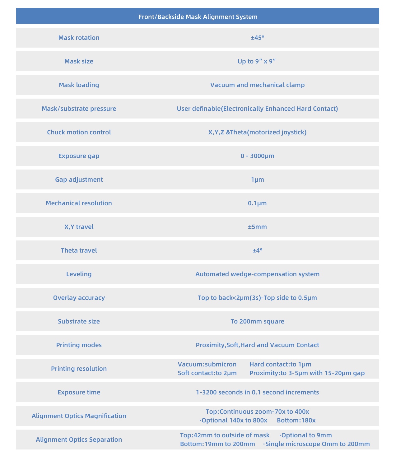 Model OAI 800E: Enhanced Front and Backside Semi-automatic Mask Aligner