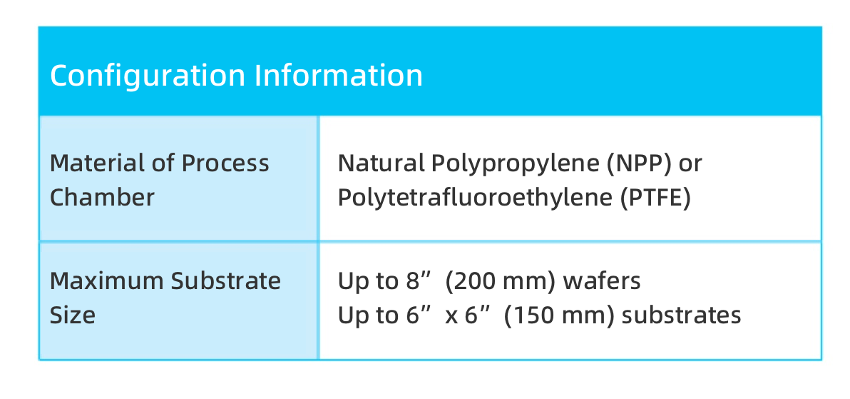 The vacuum chuck sits above the edge of the bowl allowing easy access to the wafer/substrate with an end-effector, tweezers or vacuum wand. This is a unique requirement to enable robot handling.