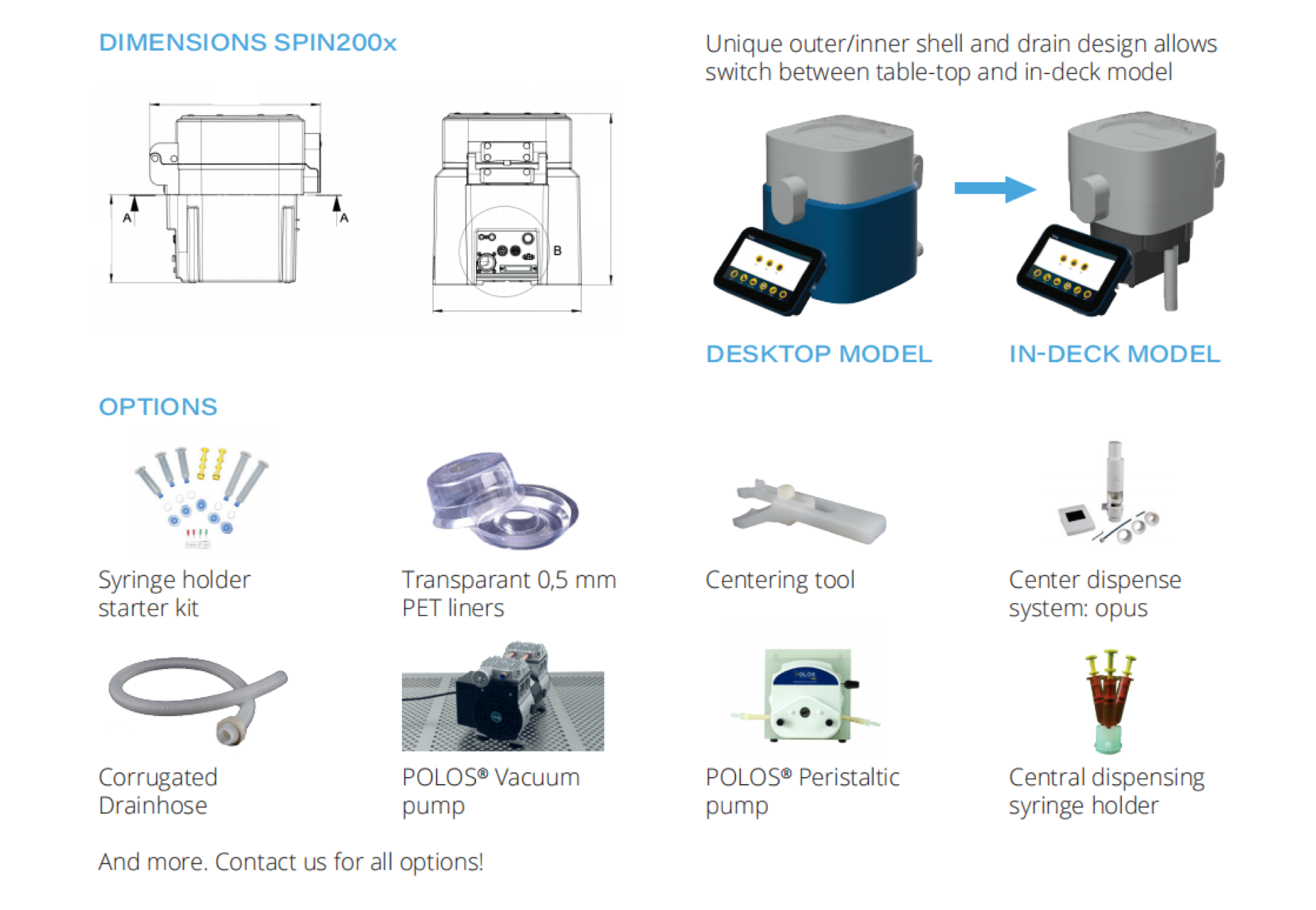 The unique outer shell and drain design allows easy switching between table-top and in-deck model. The modular design enables the user to upgrade the unit using a wide range of different accessories to ease dispensing and overall handling.