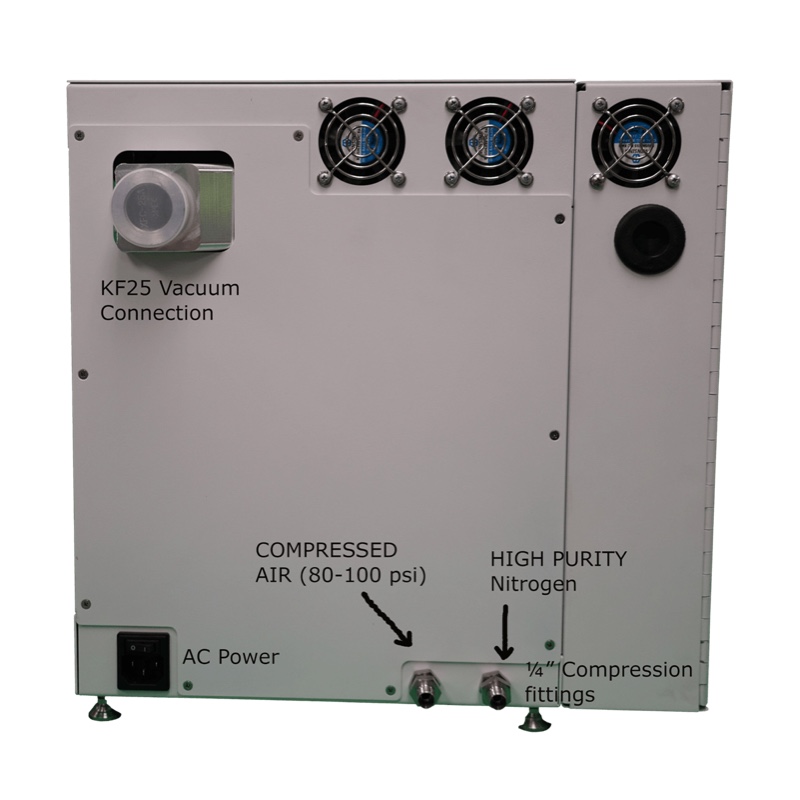 · 通过 1/4 英寸金属密封管将氮气 (UHP) 吹扫气体连接到背面的 1/4 英寸压缩接头上