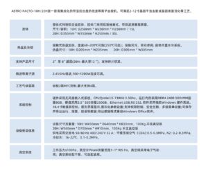 ASTRO PACTO-10H/20H是一款高集成化的带温控台盘的微波等离子去胶机,可满足2-12寸晶圆干法去胶或晶圆表面活化等工艺。